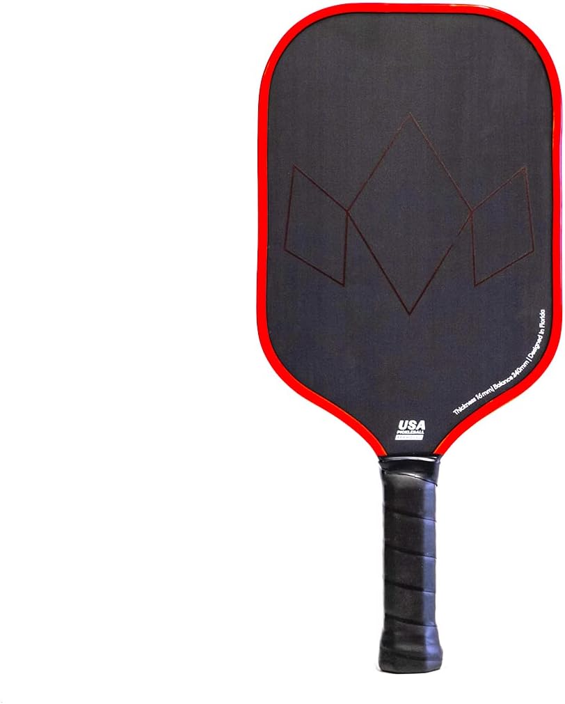 EXCELLENT COMFORT - Unlike competing thick-core paddles the Warrior's molded Taper Tech grip circumference is just 4-1/8 inches and exceedingly comfortable. 5 inch long handle is wrapped in a soft-smooth tacky grip. Weight is handle biased for additional stability and lighter feel.